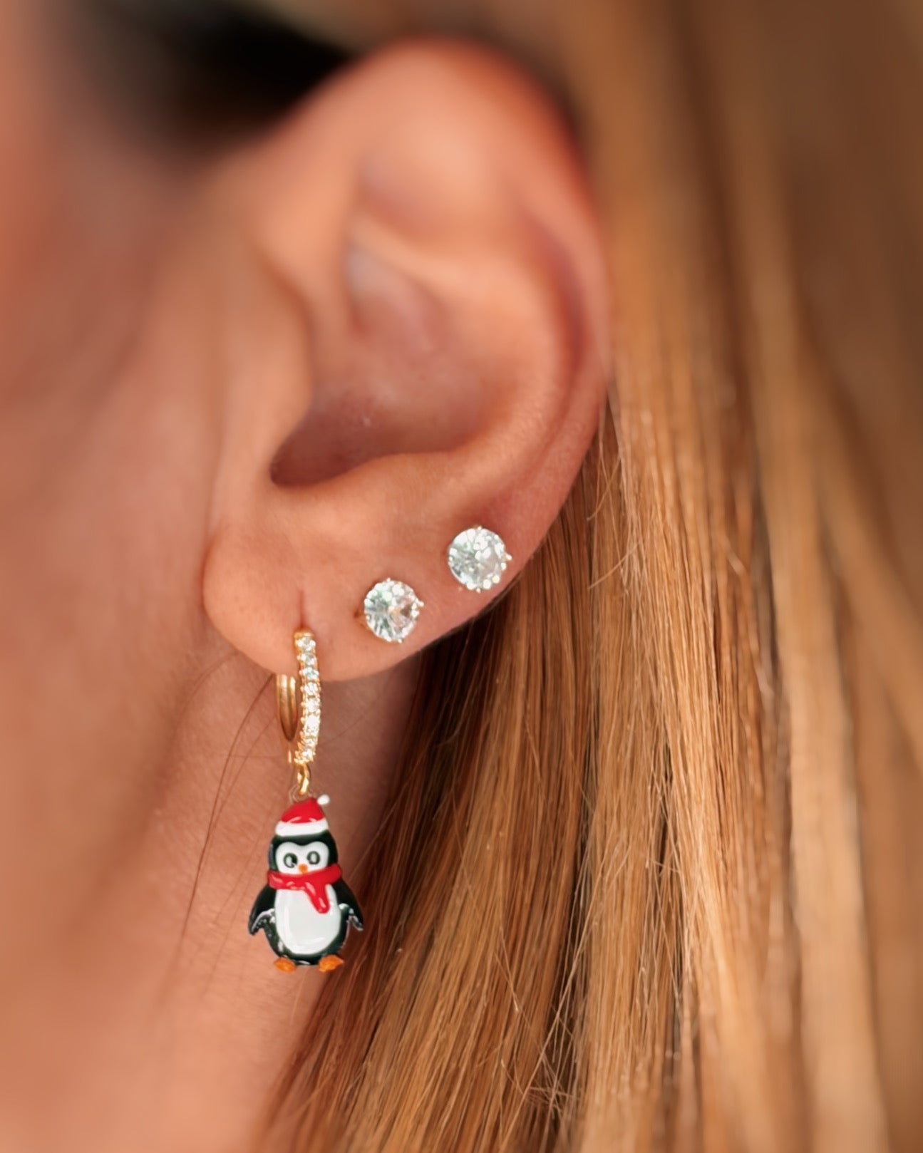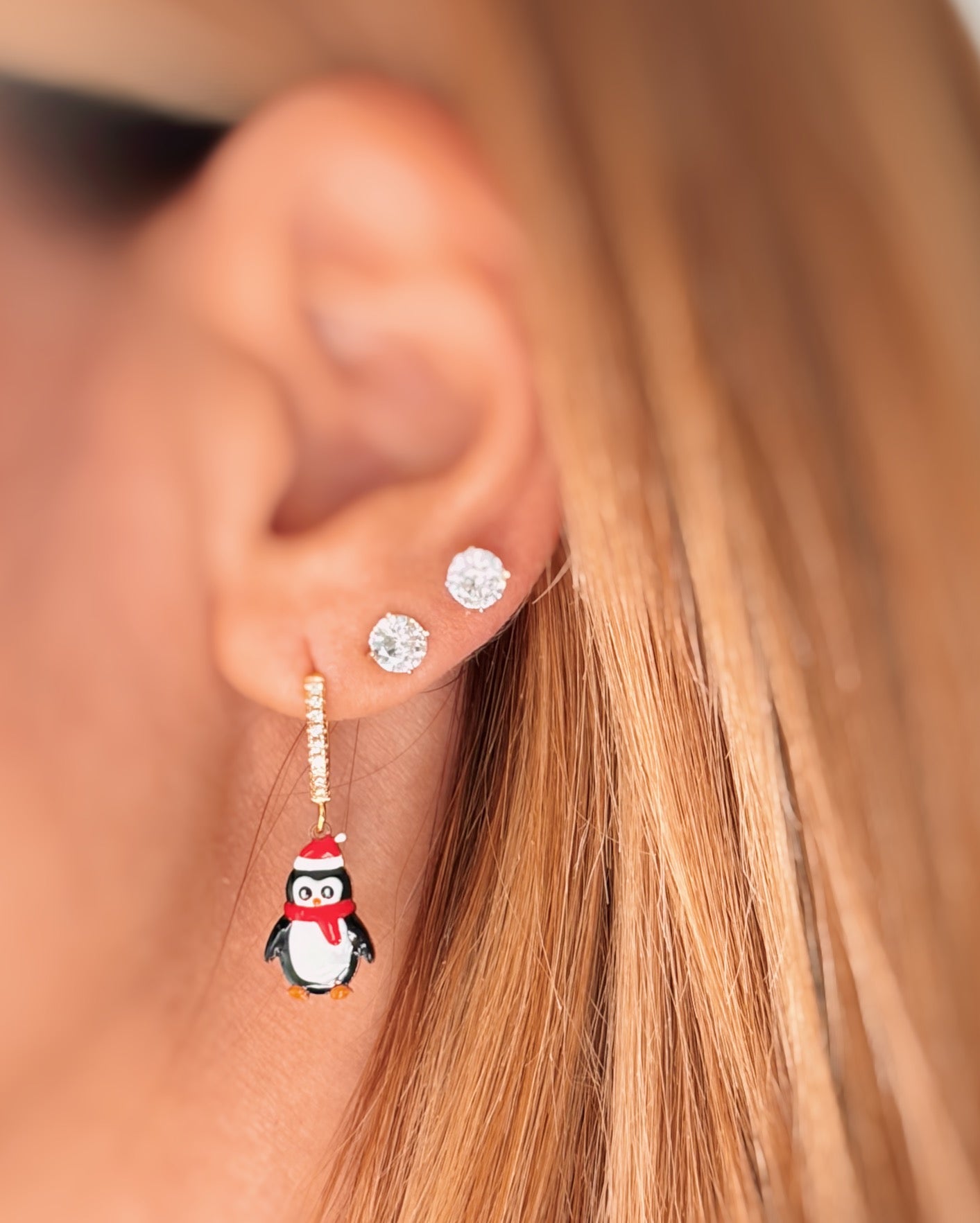 Singolo cerchietto in argento 925 e zirconi bianchi con pinguino smaltato
