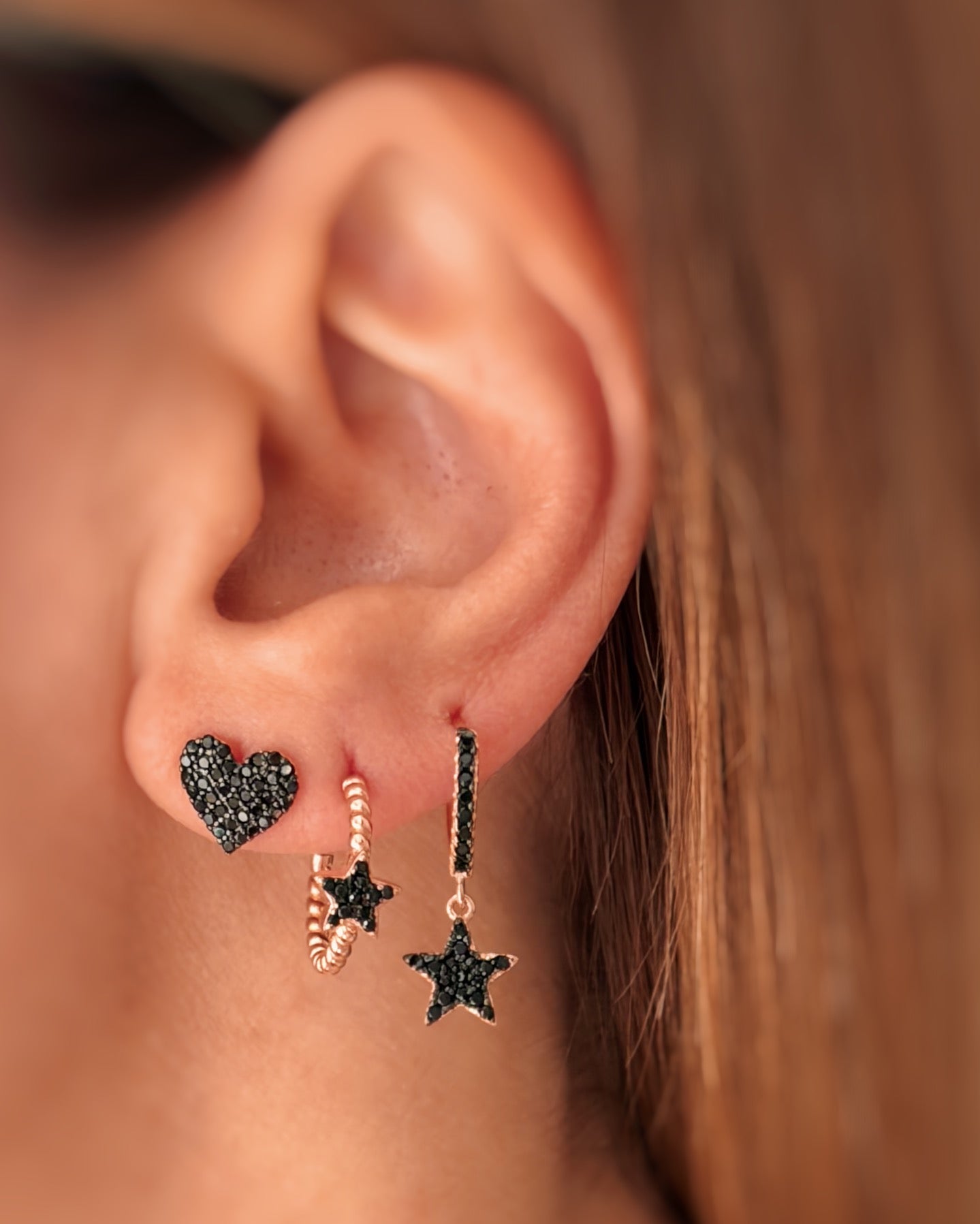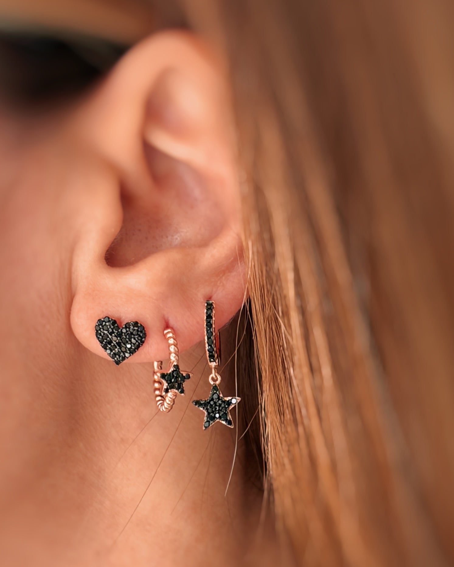 Coppia di semicerchi lavorati in argento 925 con galvanica in oro giallo con stella zirconata