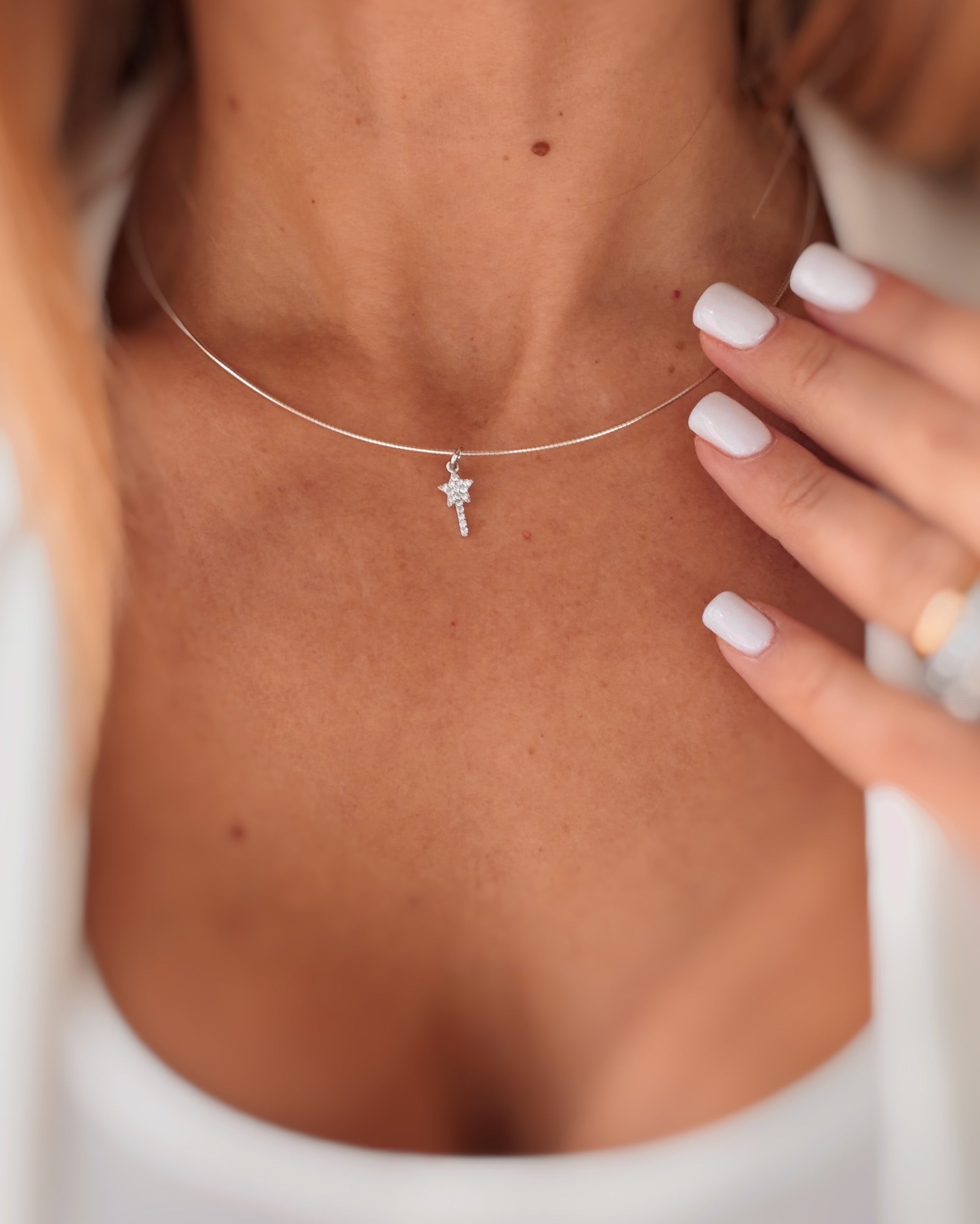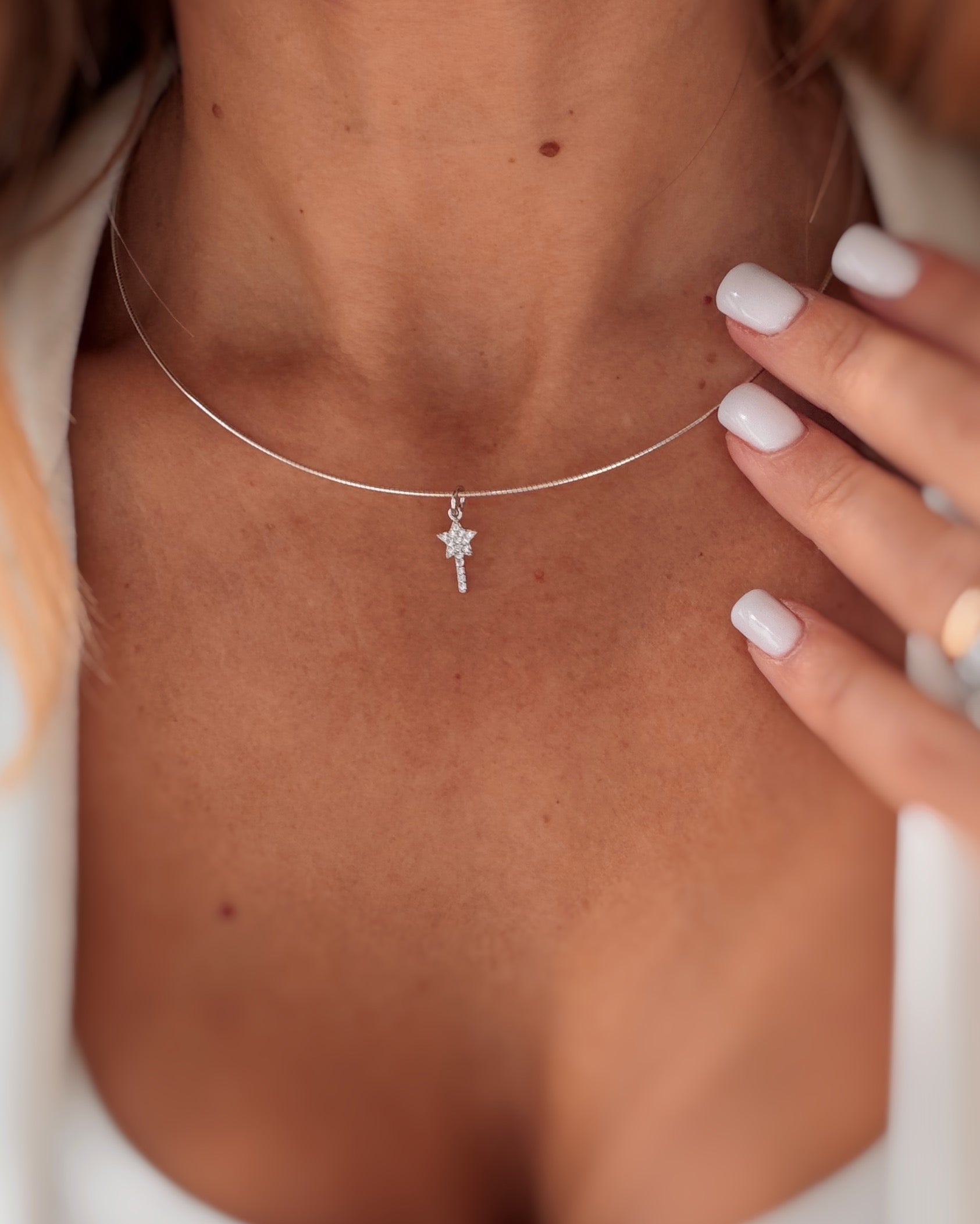 Girocollo semirigido filo di luce in argento 925 con mini bacchetta magica in zirconi bianchi