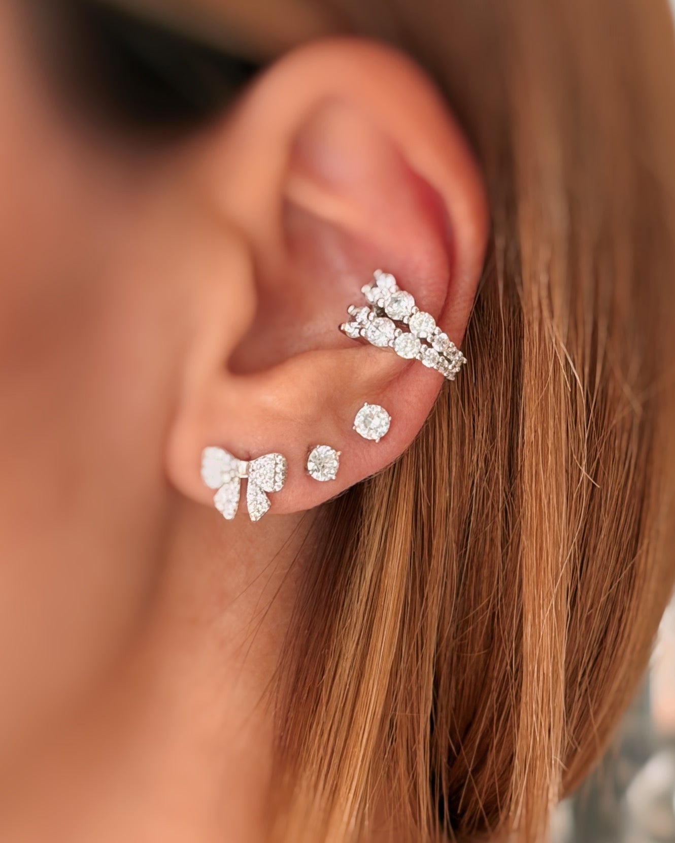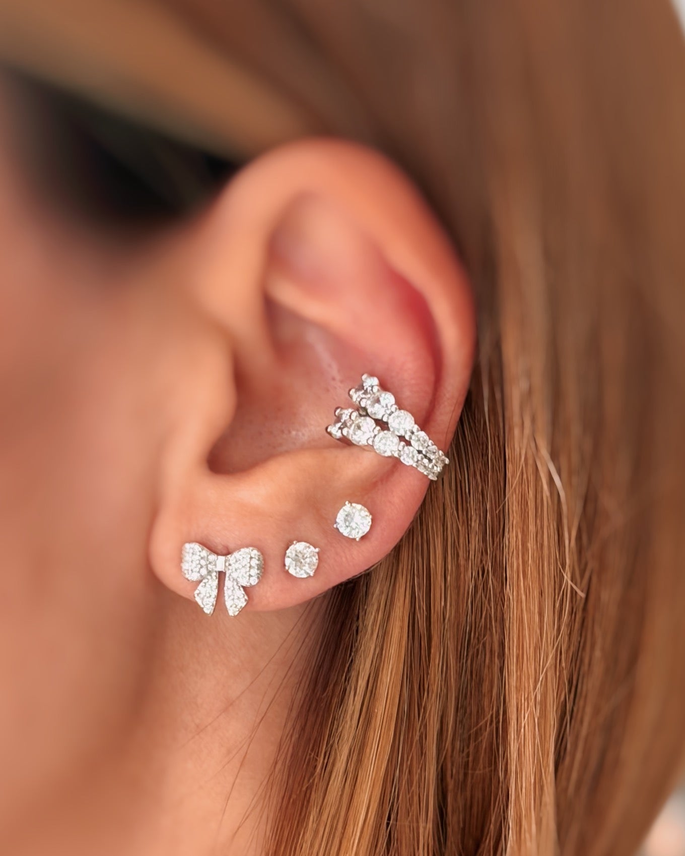 Coppia di orecchini a lobo in argento 925 a forma di fiocchetto