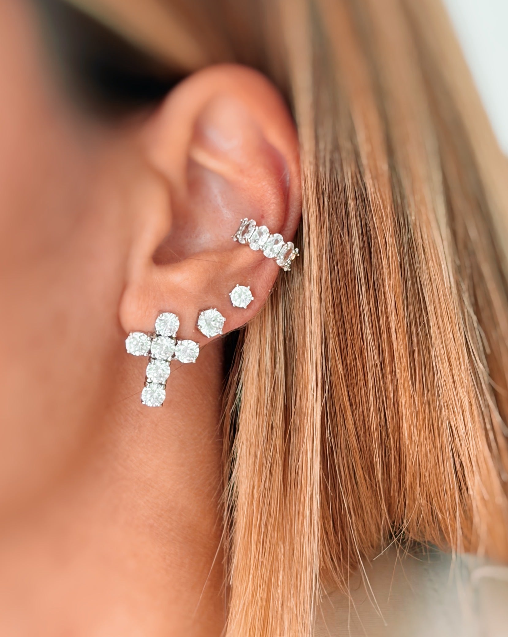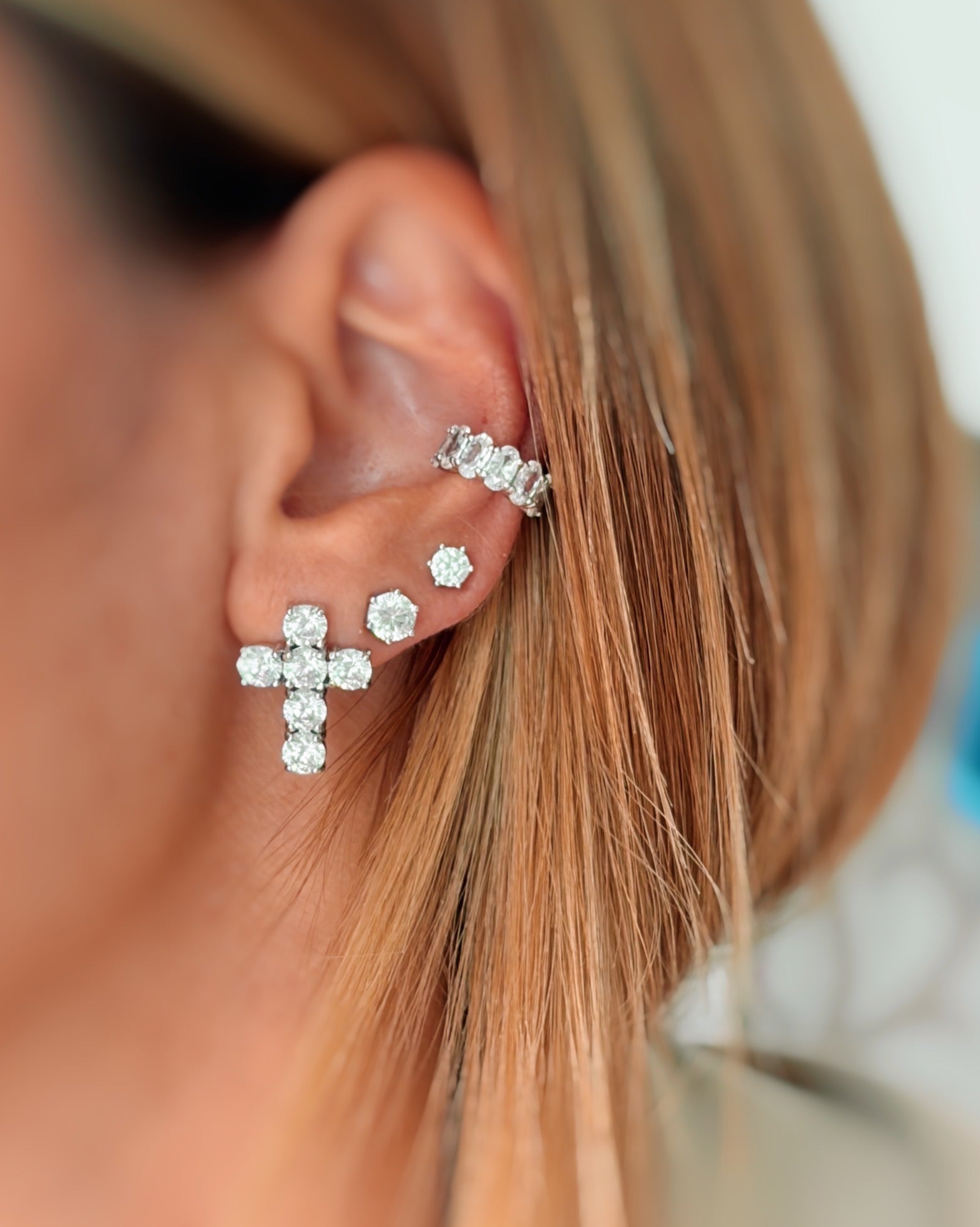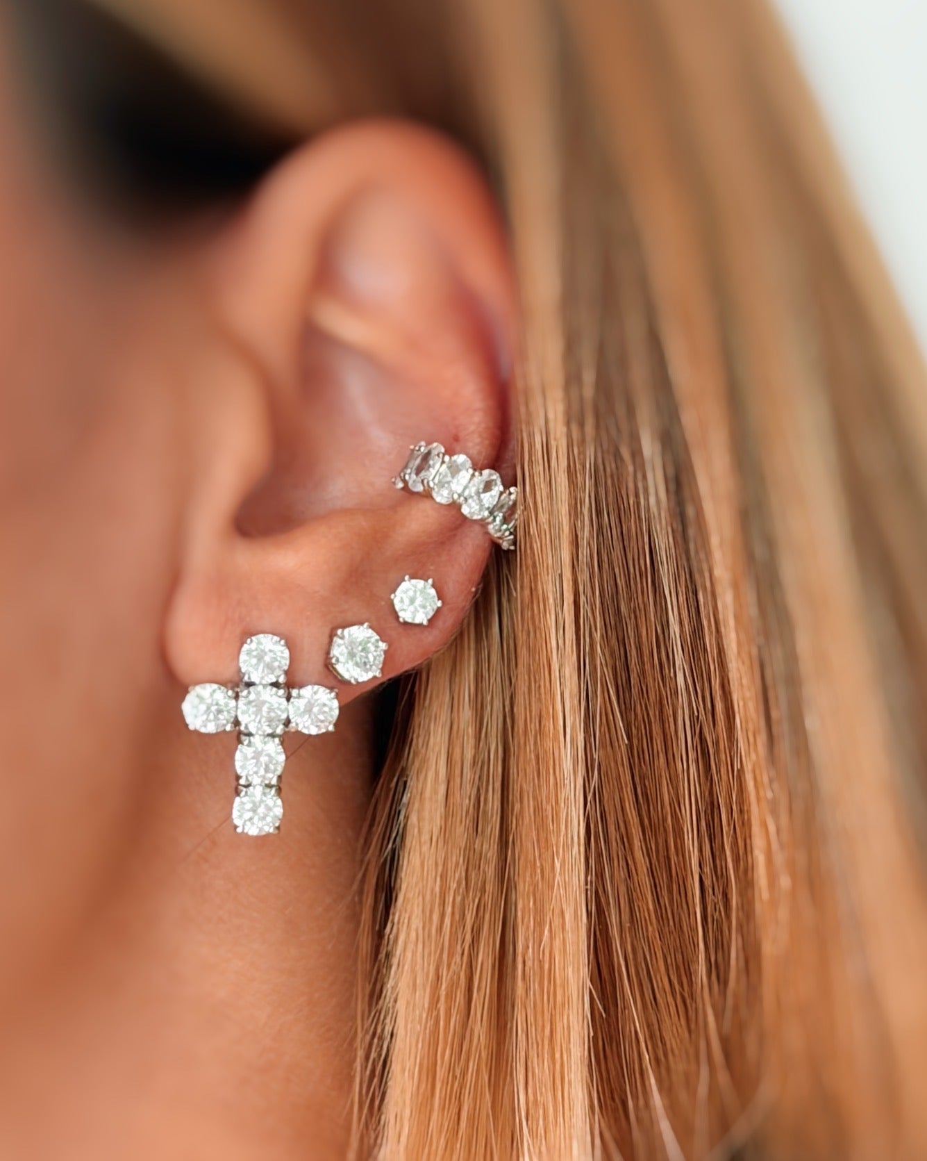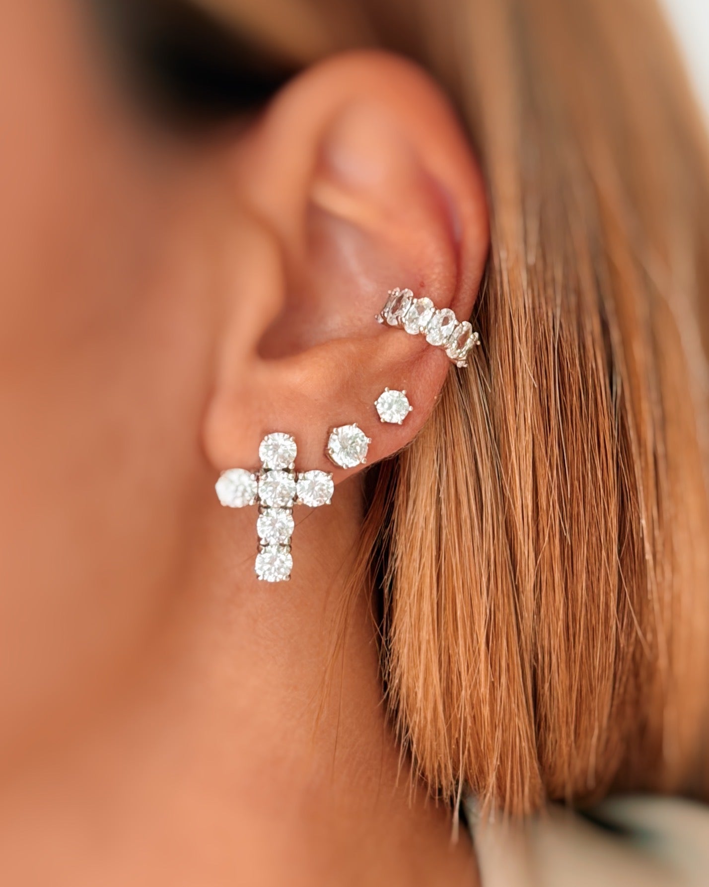 Coppia di orecchini a lobo in argento 925 con zirconi bianchi a forma di croce