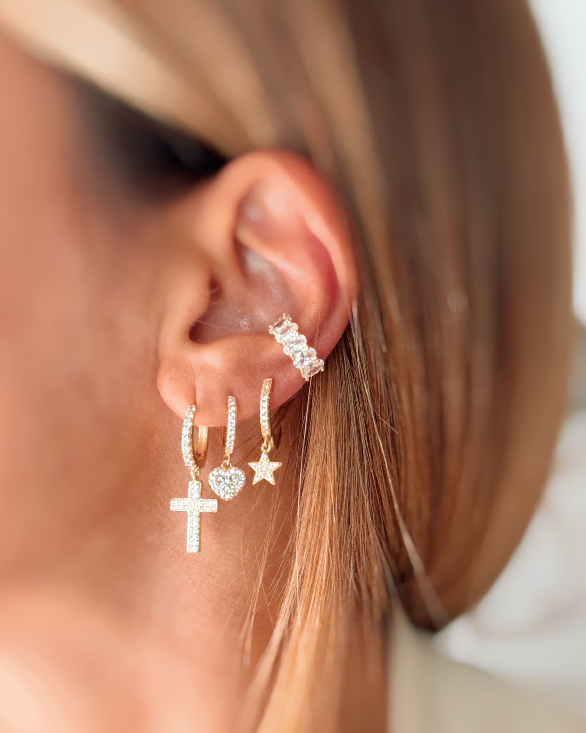 La foto è a scopo illustrativo il costo si riferisce alla coppia di cerchietti zirconati con croce pendente