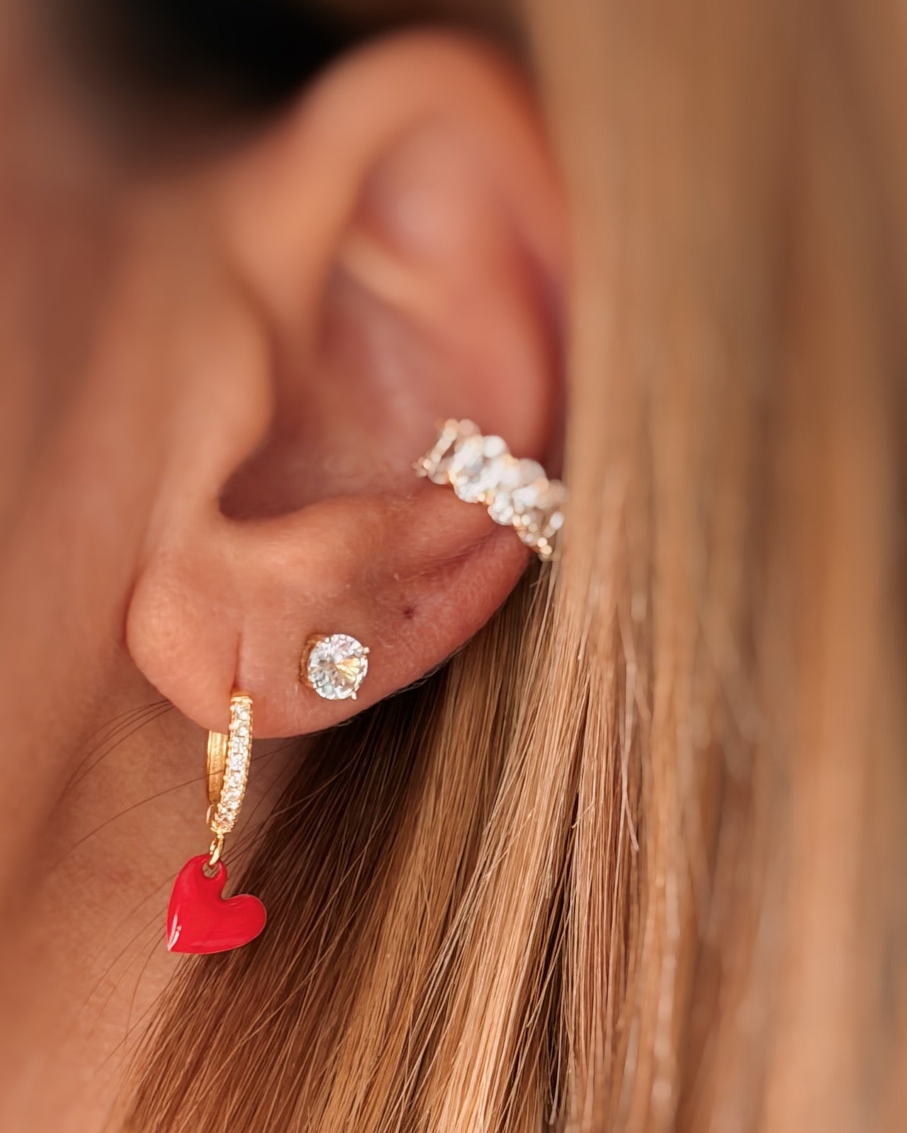 Singolo cerchietto in argento 925 e zirconi bianchi con cuoricino pendente smaltato rosso
